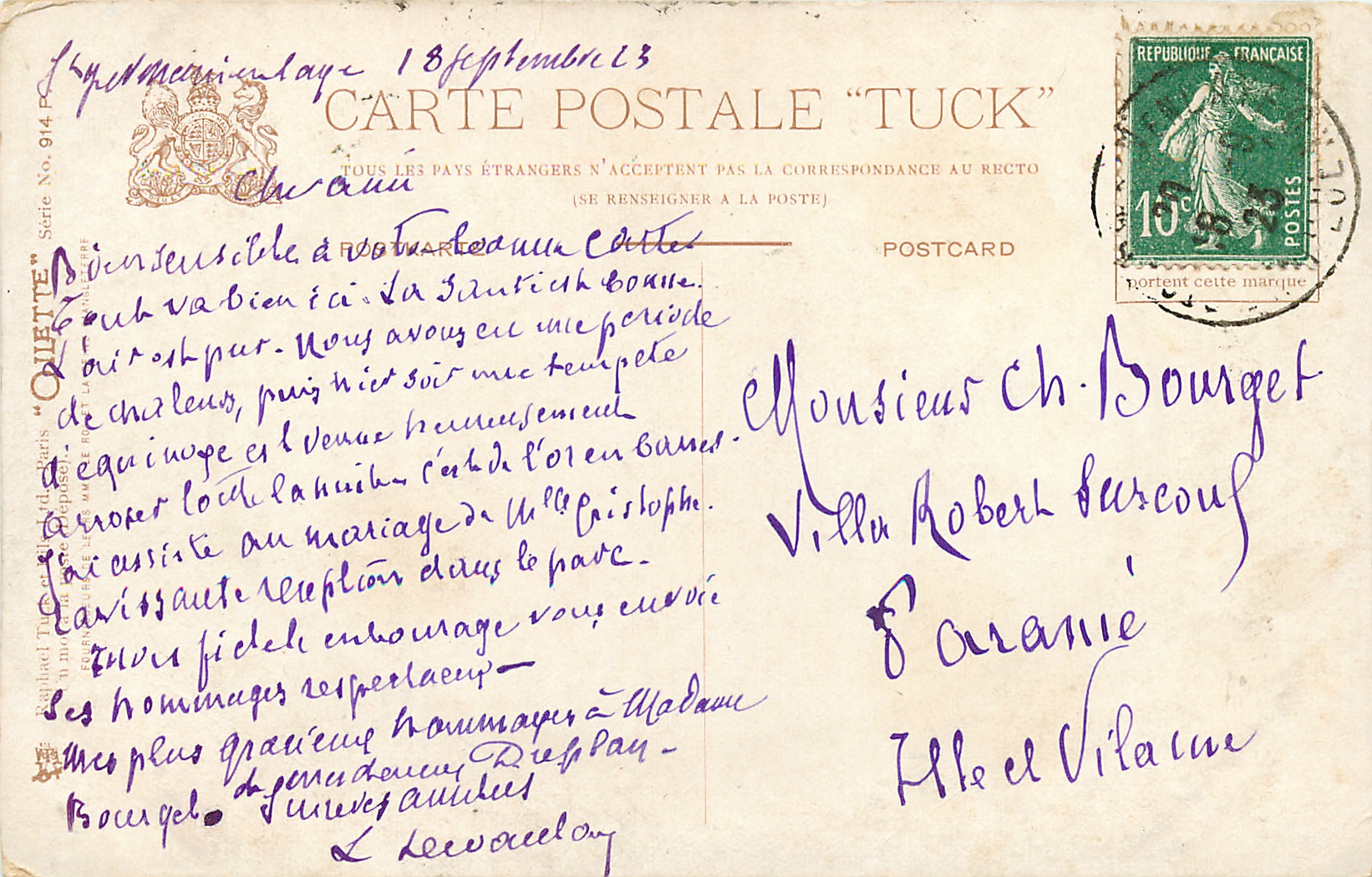 OILETTE (on front), UN MOT A LA POSTE, (DEPOSE), come with grey advert. on back CHICOREE ARLATTE & CIE PREMIERE MARQUE FRANCAIS