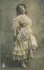 full length study, she stands right, faces front, right foot forward, roses in her hair
