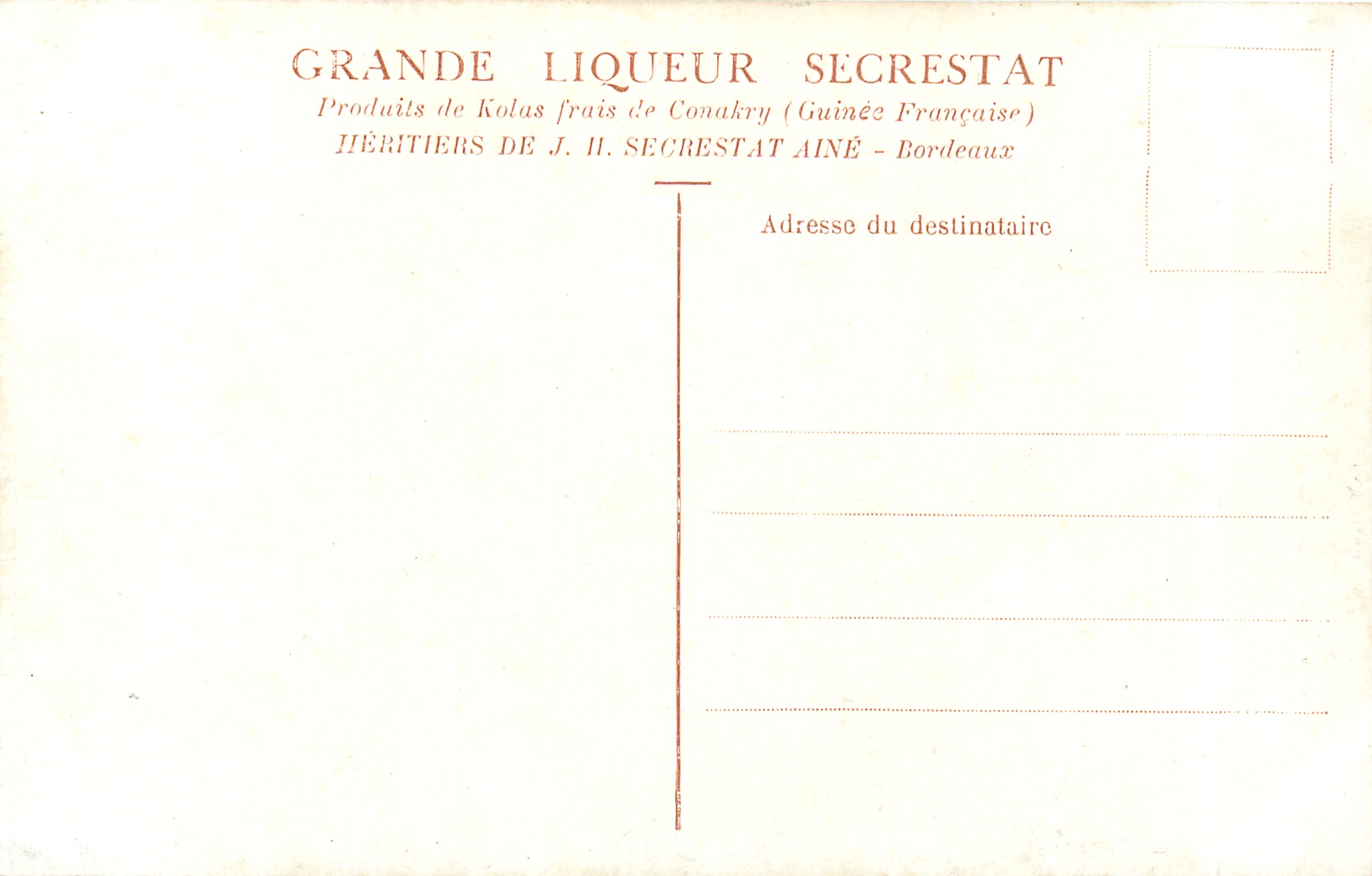 appears to be Tuck, but no Tuck logo, PRODUITS DE KOLAS DE CONAKRY (GUINEE FRANCAISE) HERITIERS DE J. II. SECREST AT AINE- BORDEAUX