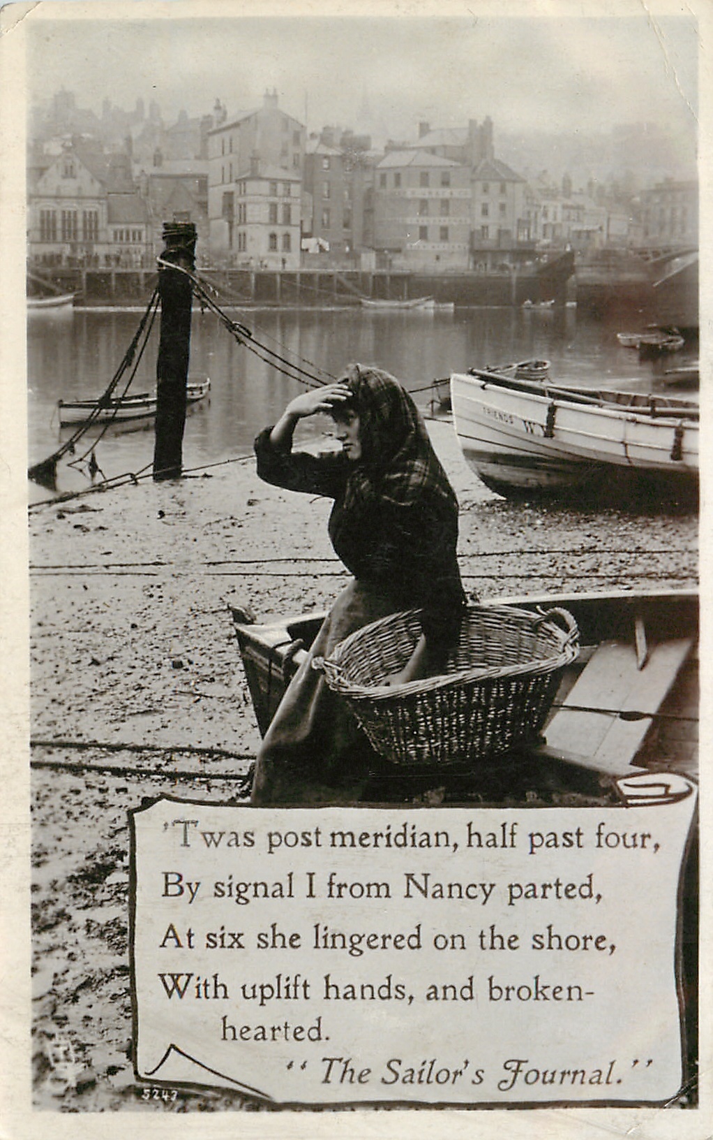 verse:- 'TWAS POT MERIDIAN, HALF PAST FOUR, BY SIGNAL I FROM NANCY PARTED, AT SIX SHE LINGERED ON THE SHORE, WITH UPLIFT HANDS, AND BROKEN HEARTED. "THE SAILOR'S JOURNAL"