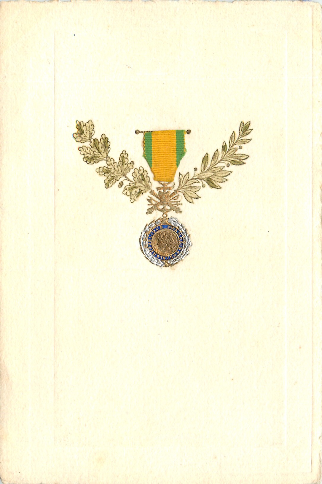 REPUBLIC FRANCAISE open wreath, green ribbon above inscribed round medal