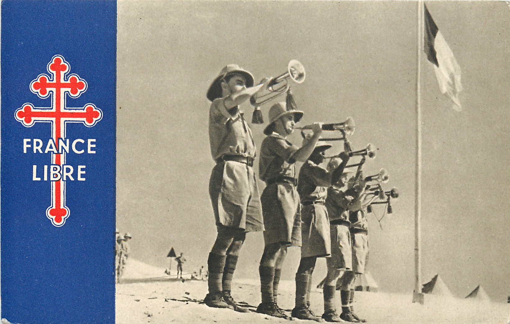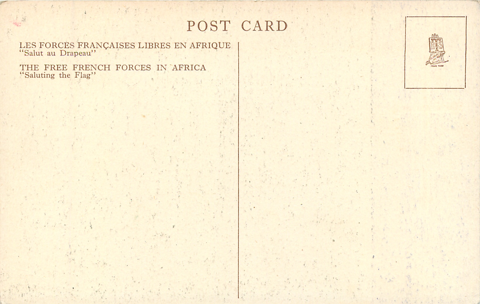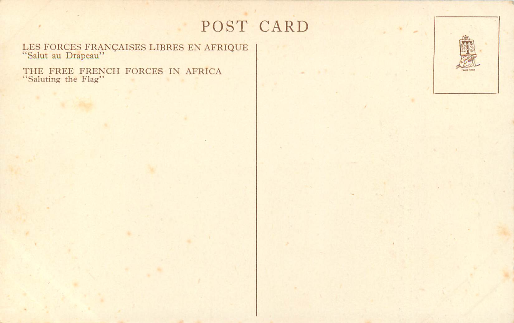 LES FRANCES LIBRES EN AFRIQUE cross of Lorraine in red on blue background on left of card