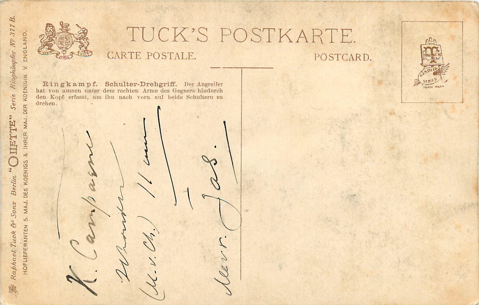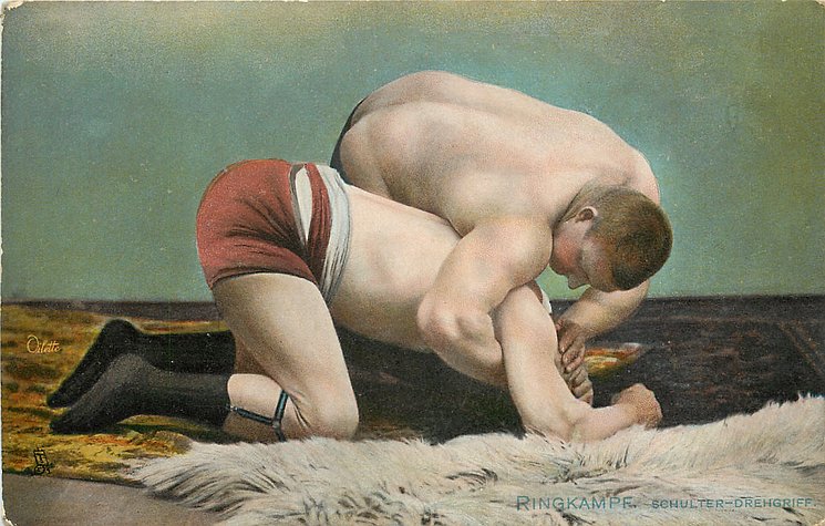 RAPHAEL TUCK & SONS BERLIN, OILETTE, same image, English back 4500 WRESTLING SER. II