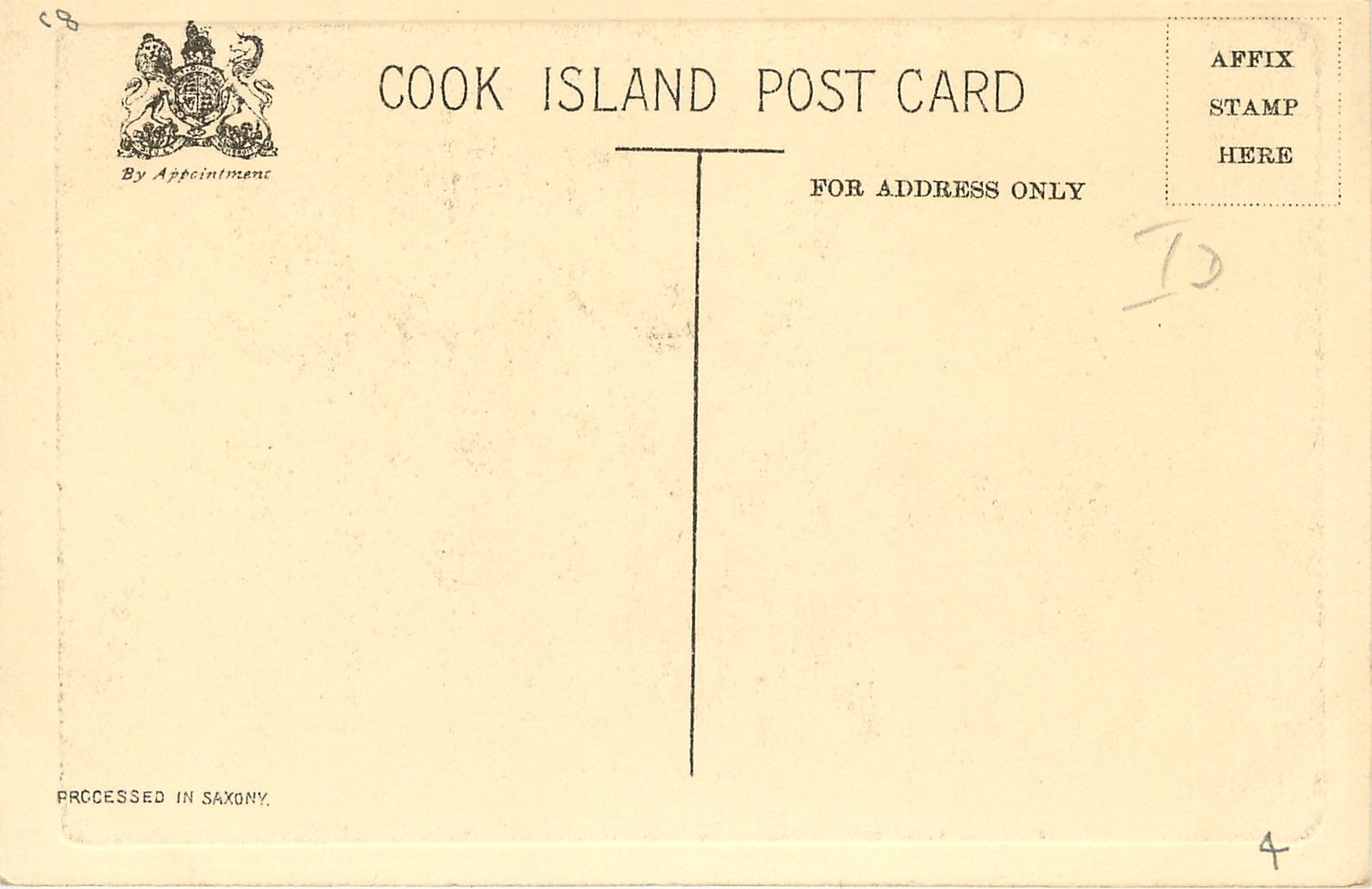 COOK ISLAND POSTCARD, PROCESSED IN SAXONY, embossed margins