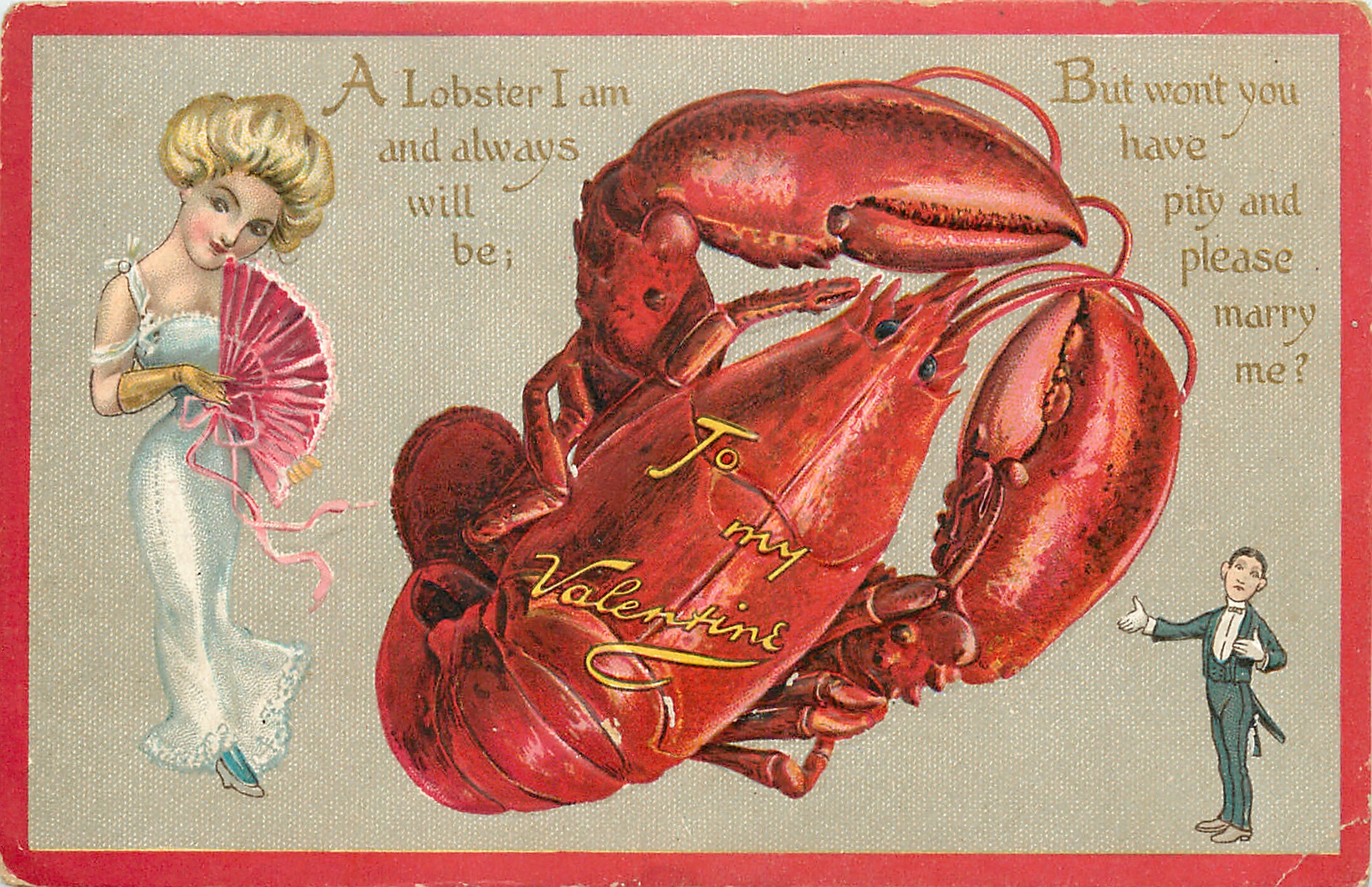 TO MY VALENTINE A LOBSTER I AM AND ALWAYS WILL BE; BUT WON'T YOU HAVE PITY AND PLEASE MARRY ME?