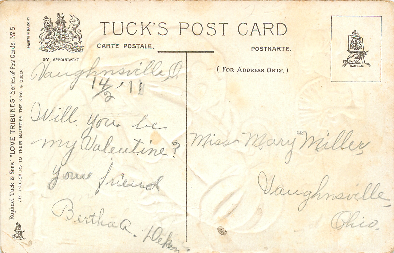 LOVE TRIBUNES valentine these appear to be tuck errors for LOVE TRIBUTES we have 5 of the 12 that probably exist
