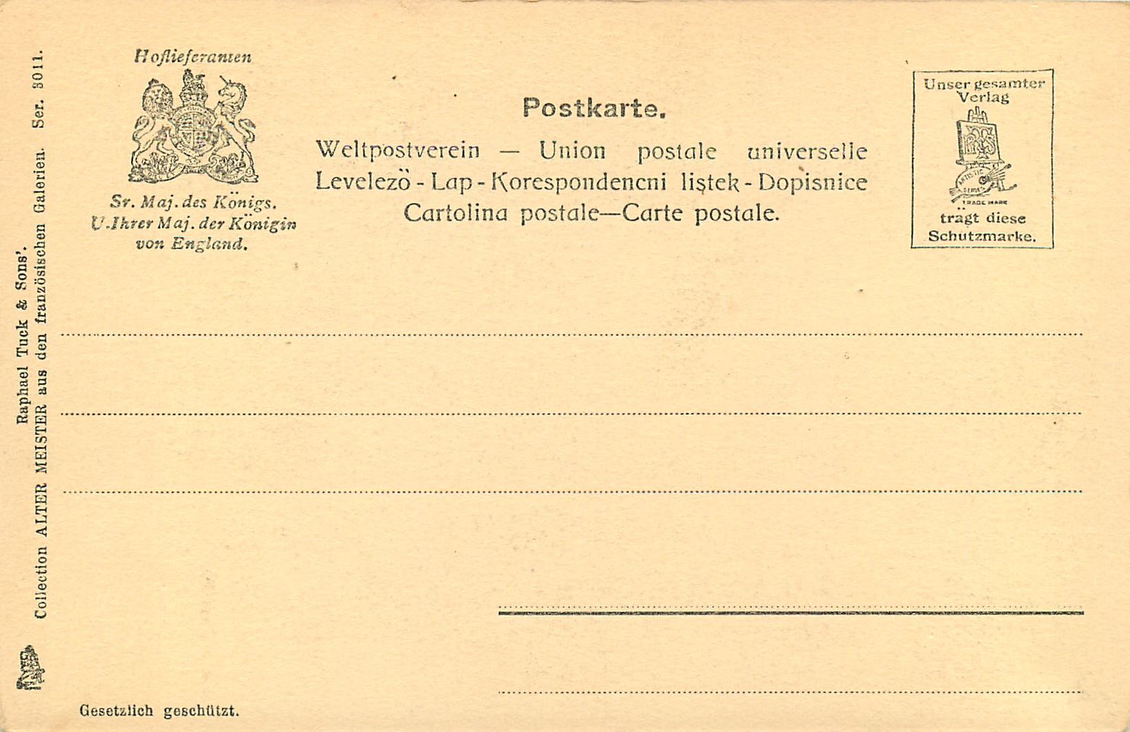 u/b, brown/purple, German/International backs, GESETZLICH GESCHUTZT, same images & numbers, French backs 3011 CHEFS D'OEUVRE DU MUSEE DU LOUVRE