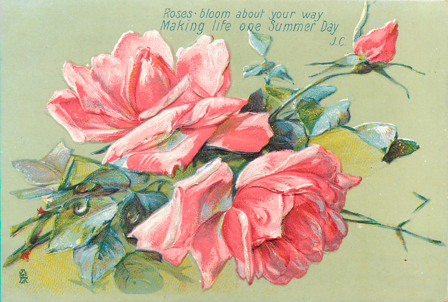 ROSES BLOOM ABOUT YOUR WAY MAKING LIFE ONE SUMMER DAY two pink roses & a bud