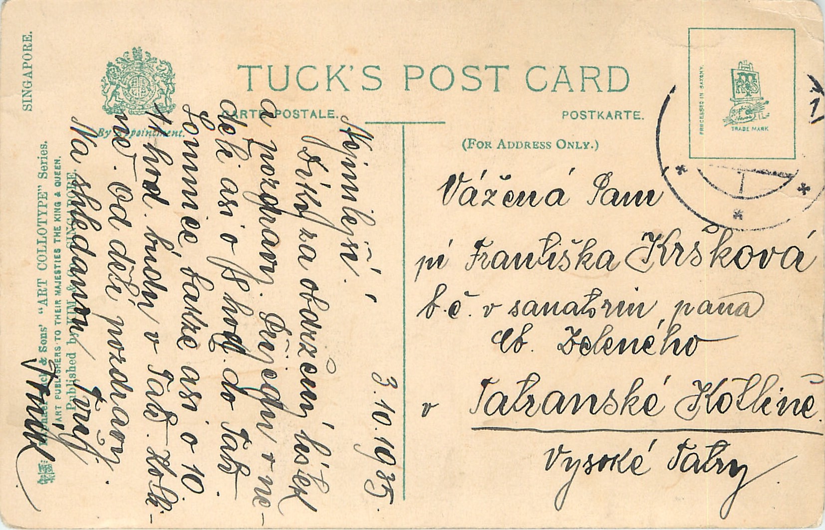 grey, green backs, ART COLLOTYPE, PUBLISHED BY KIM & CO., SINGAPORE, PROCESSED IN SAXONY (in stamp box), shades of grey/black