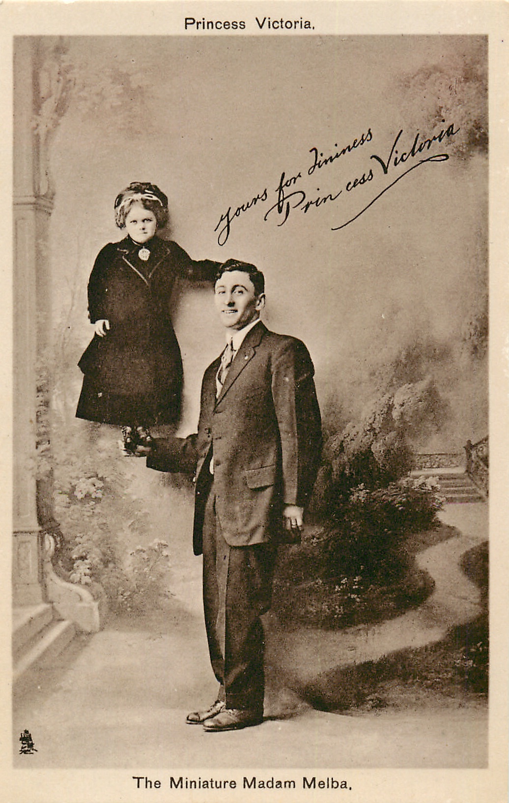 PRINCESS VICTORIA, THE MINIATURE MADAM MELBA, card titles in margins