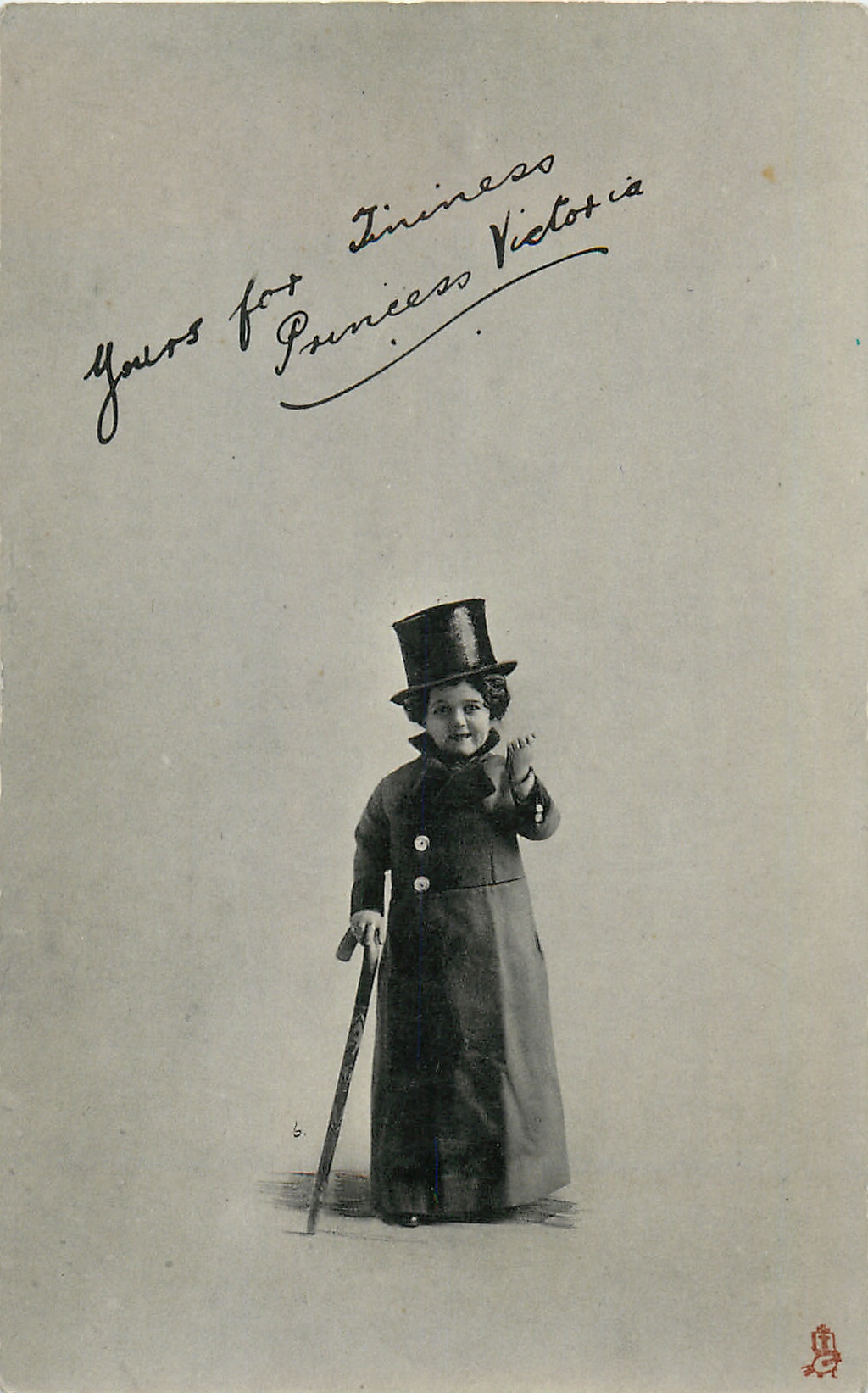 facsimile YOURS FOR TININESS PRINCESS VICTORIA across top of card, she stands alone facing & looking front