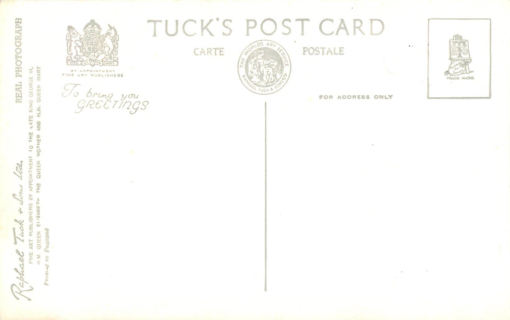 REAL PHOTOGRAPH, PRINTED IN ENGLAND GREETINGS TO YOU or TO BRING YOU GREETINGS on back