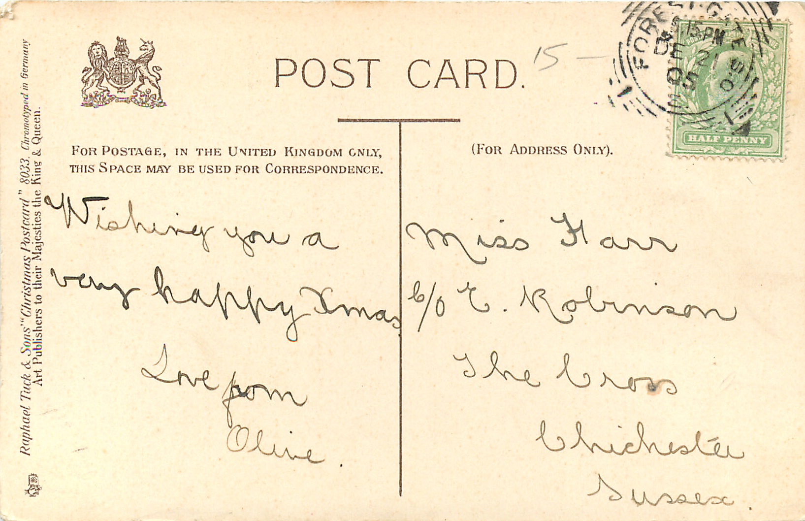 CHROMOTYPED IN GERMANY, listed in RAPHAEL TUCK & SONS' LD. CHRISTMAS & NEW YEAR 1904/1905 catalogue