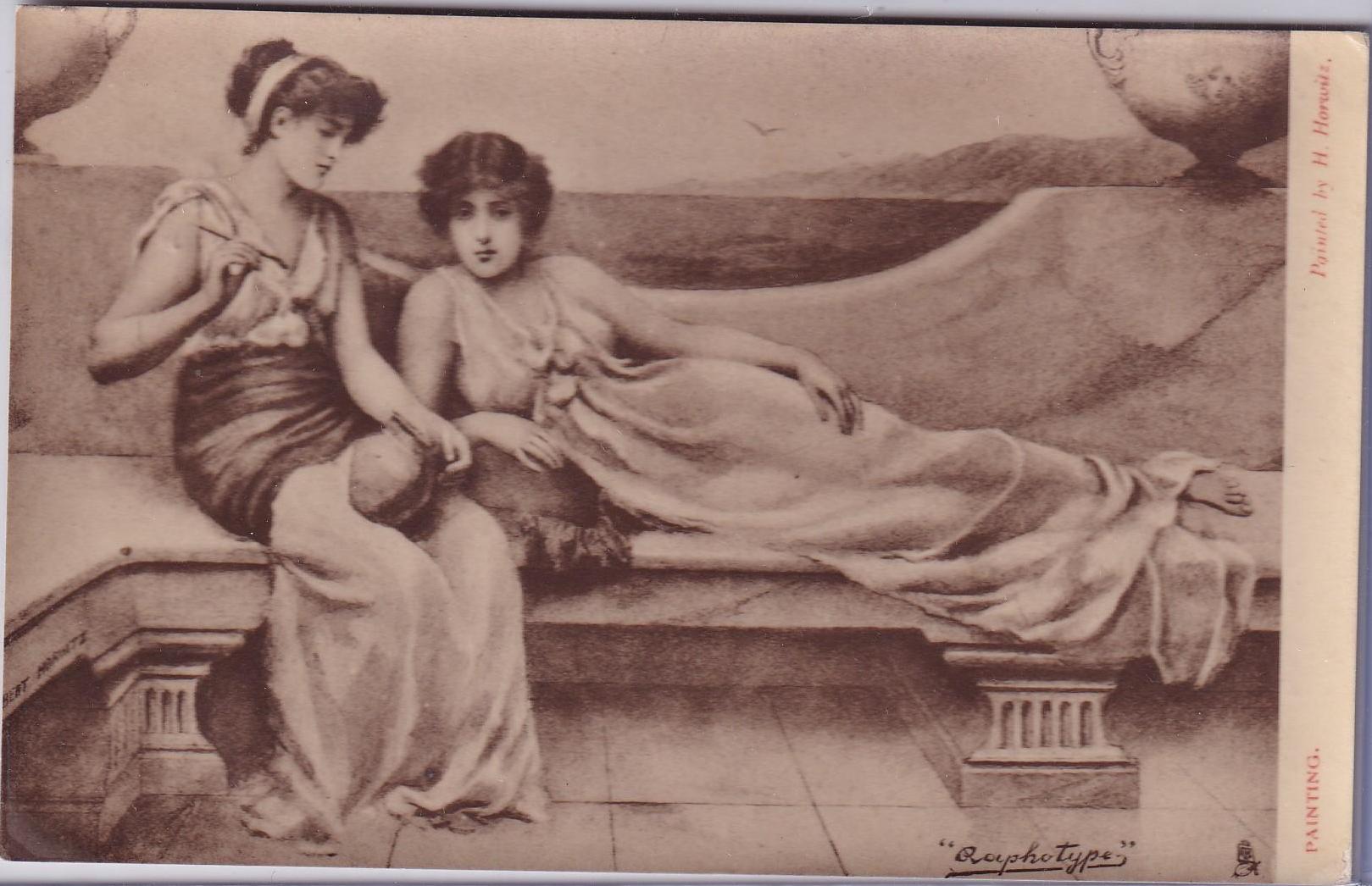 grey-green or sepia, RAPHOTYPE, 2 backs, PRODUCED or PHOTOTYPED IN BAVARIA (in stamp[ box), same images 2908, PAINTED BY H. HORWITZ., listed in 1904 POSTCARD Catalogue