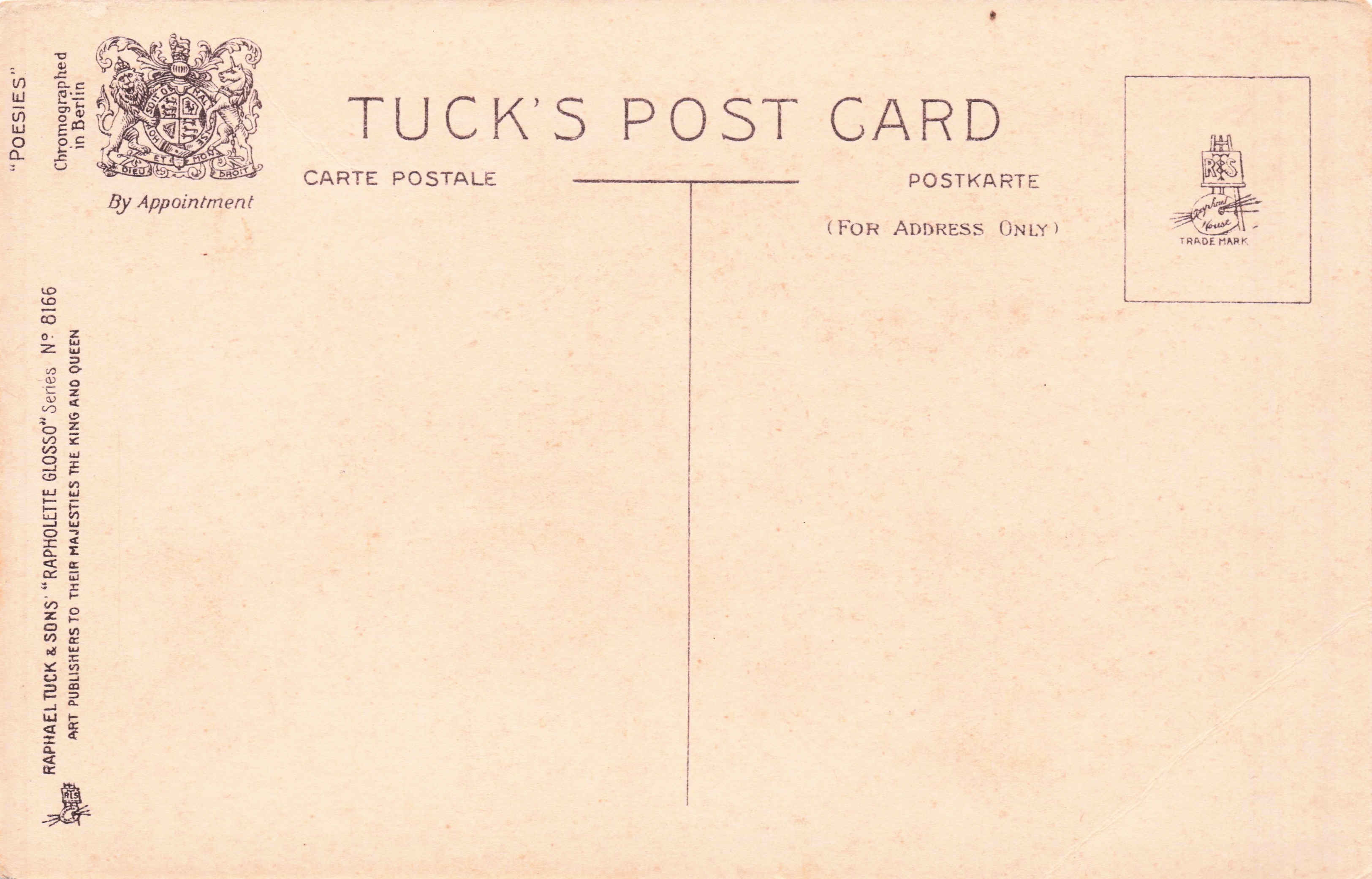 RAPHOLETTE GLOSSO, CHROMOGRAPHED IN BERLIN Tuck spelled set name as POSIES or POESIES