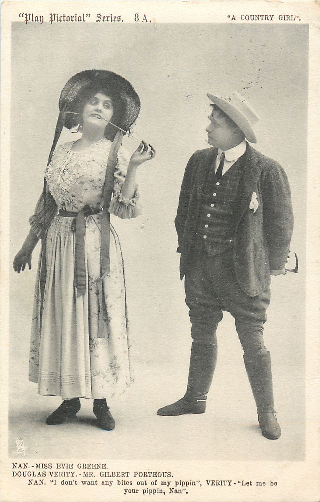 Evie Greene (1875-1917) was Nan in "A Country Girl" musical play Daly's Th. London 1902 (729) Gilbert Porteous was Douglas Verity in " A Country Girl"