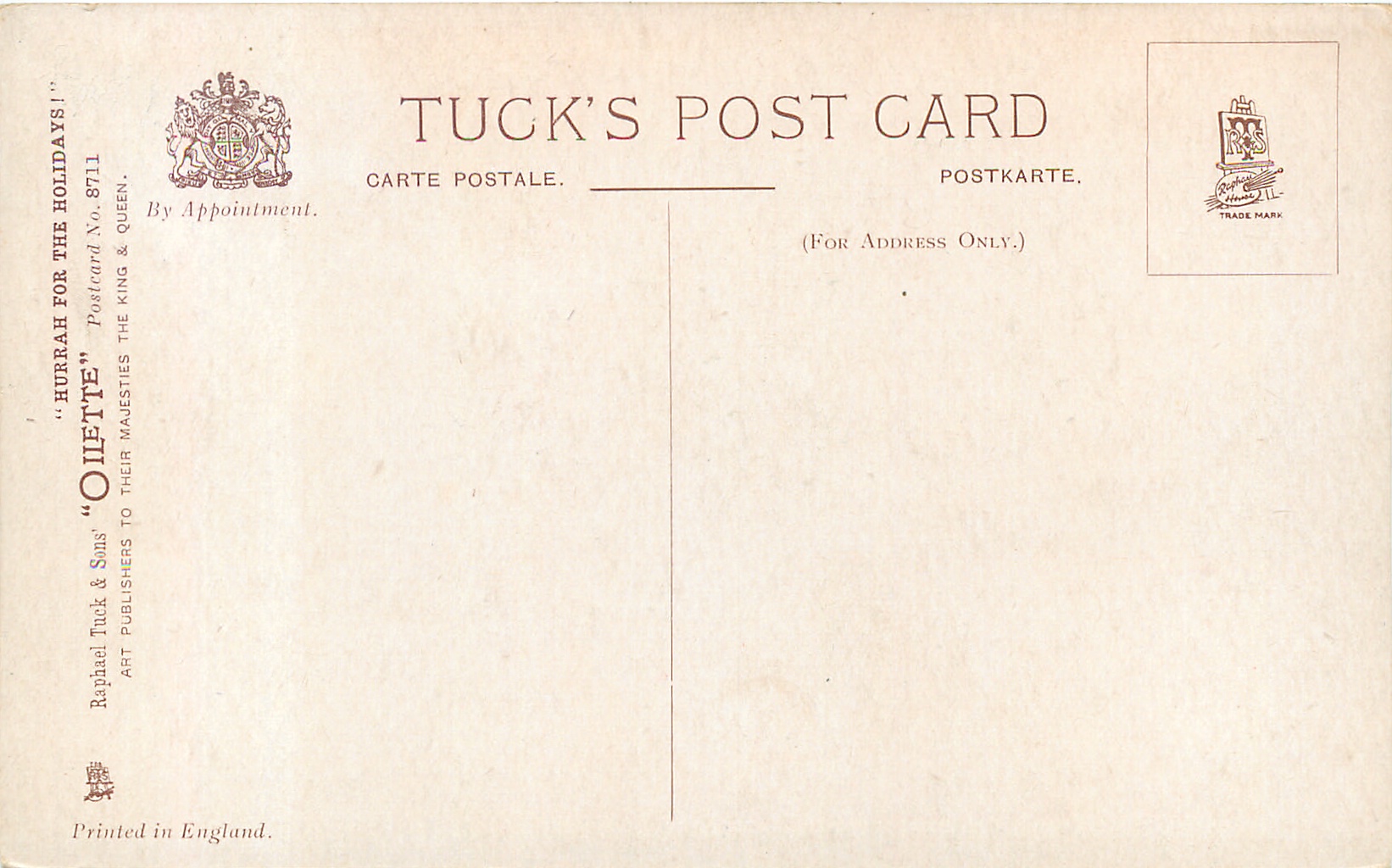 OILETTE, PRINTED IN ENGLAND, listed in 1930 POSTCARD catalogue,