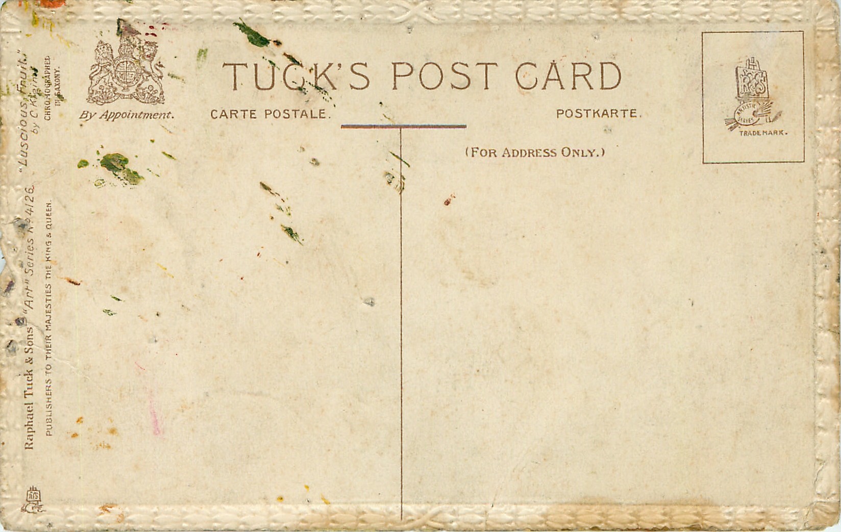 ART, CHROMOGRAPHED IN SAXONY, listed in 1911/1912 Postcard Catalogue
