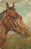 horses head, brown without white blaze, bridled, looking right