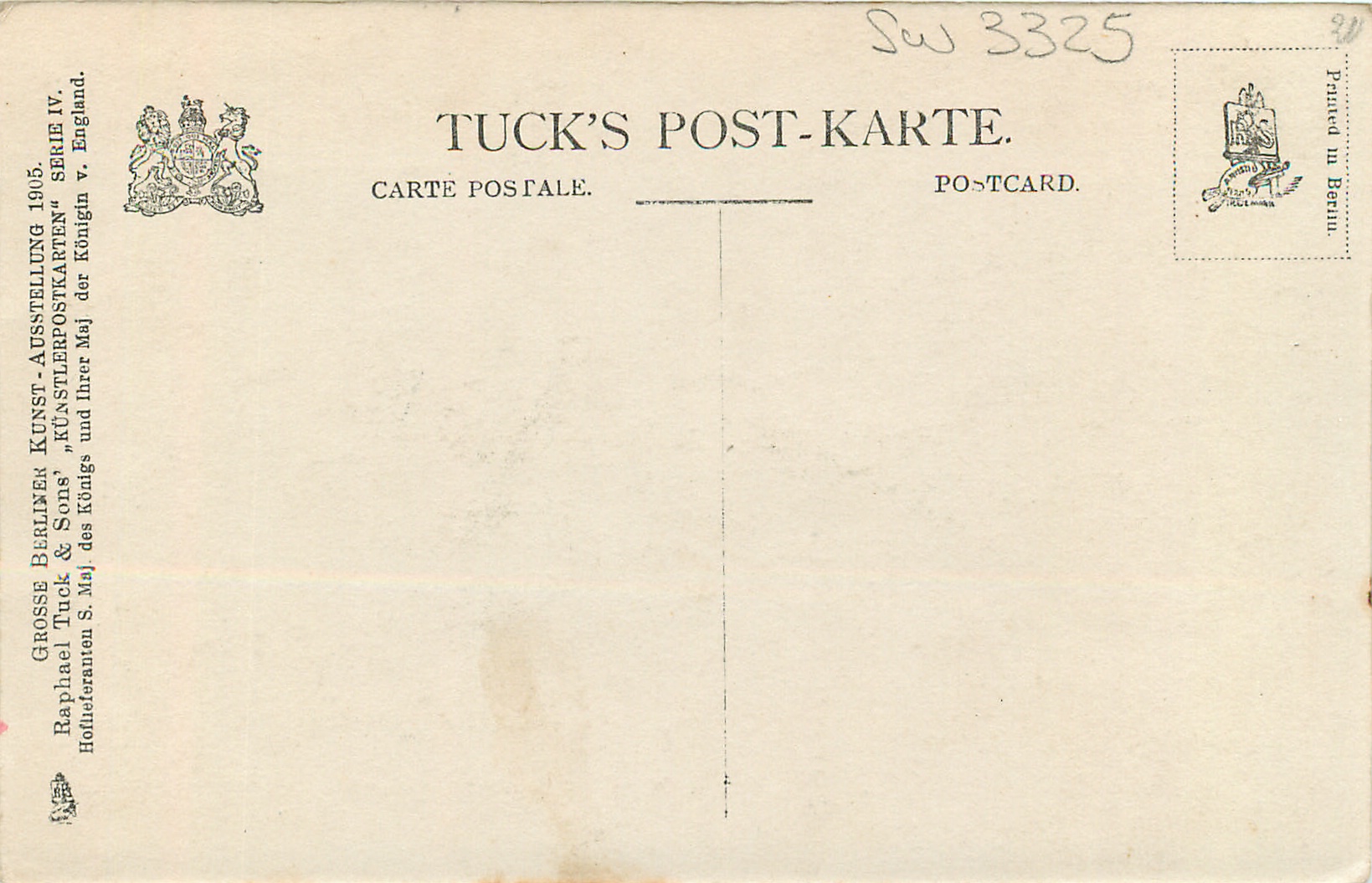 KUNSTLERPOSTKARTEN SERIE IV, PRINTED IN BERLIN (in stamp box), dark sepia or grey