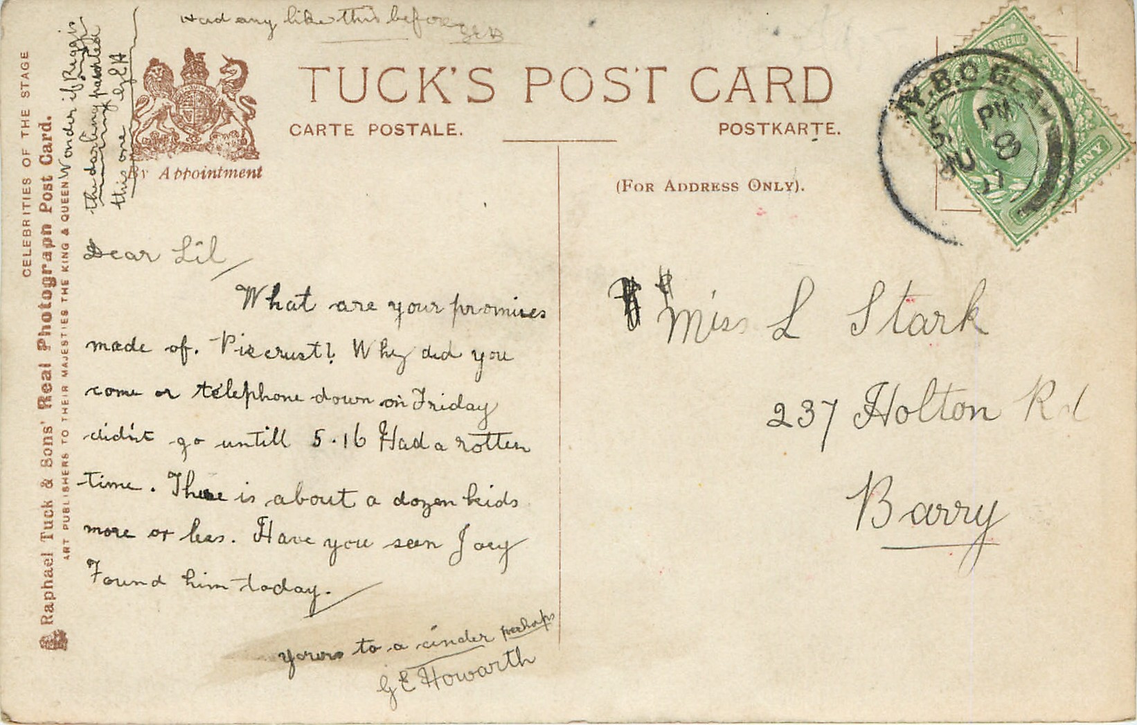 (1872-1930) in "Alice in Wonderland" Prince of Wales Th.1906; in "My Darling" Hicks Th. 1907;