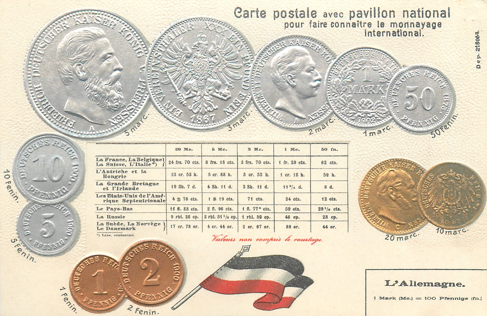 CARTE POSTALE AVEC PAVILLON NATIONAL coins
