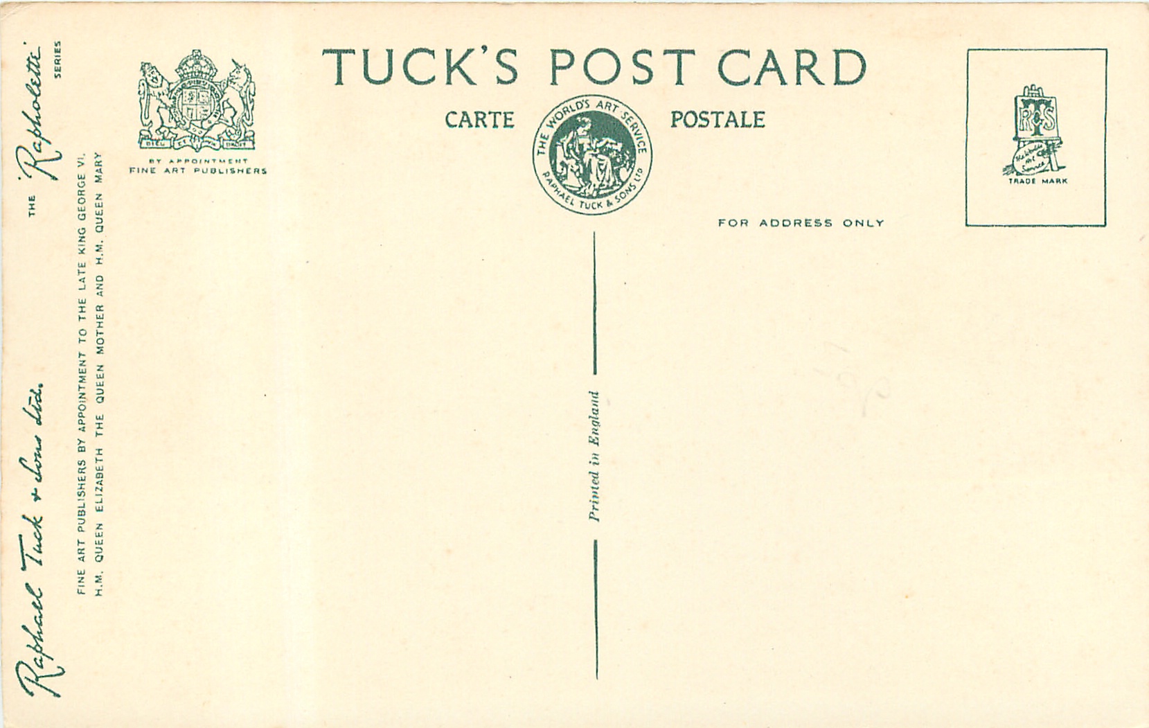 coloured chrome, RAPHOLETTE, PRINTED IN ENGLAND, green printing on back