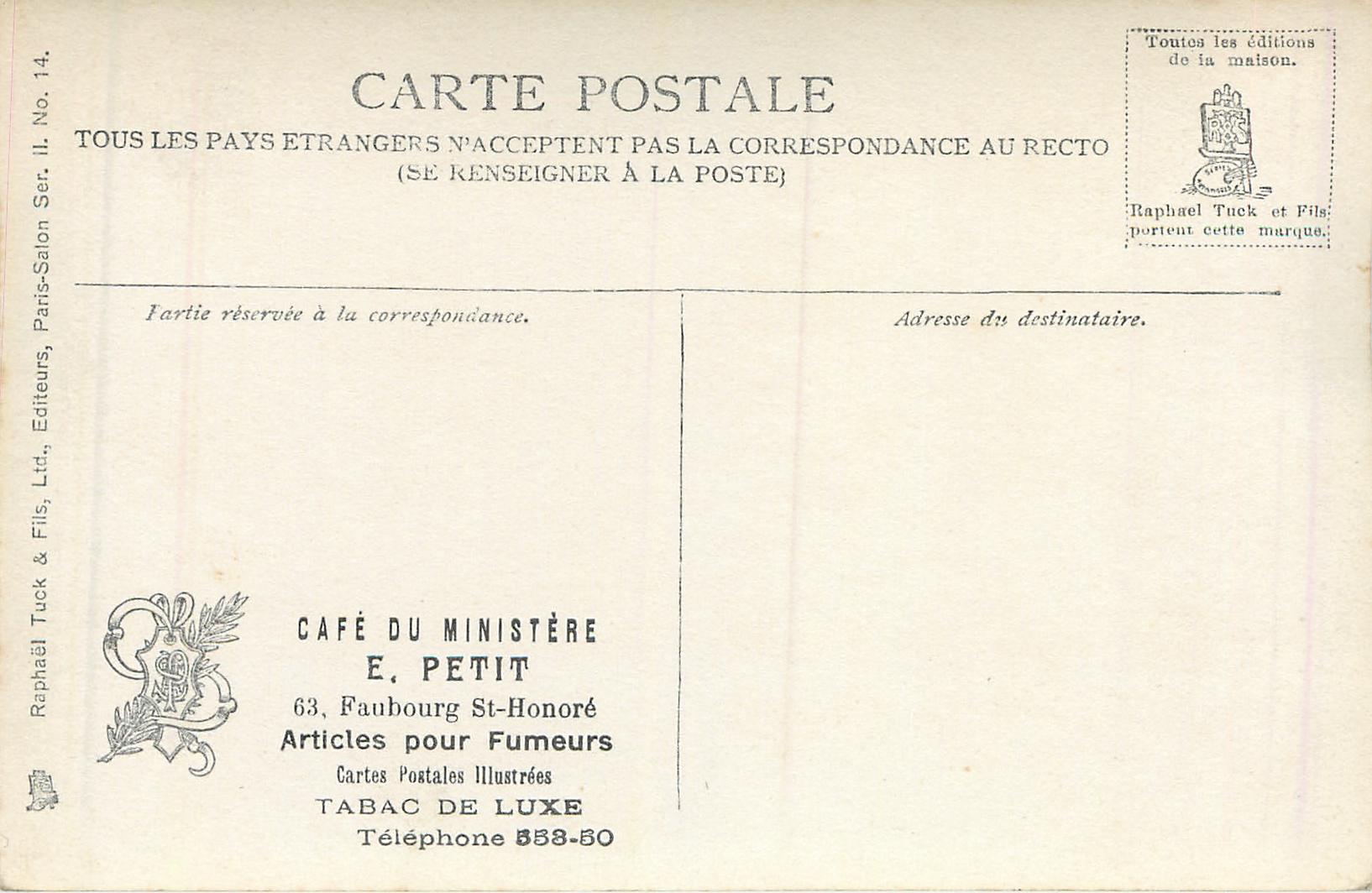 comes CAFE DU MINISTERE E. PETIT ... ARTICLES POUR FUMEURS advert on back
