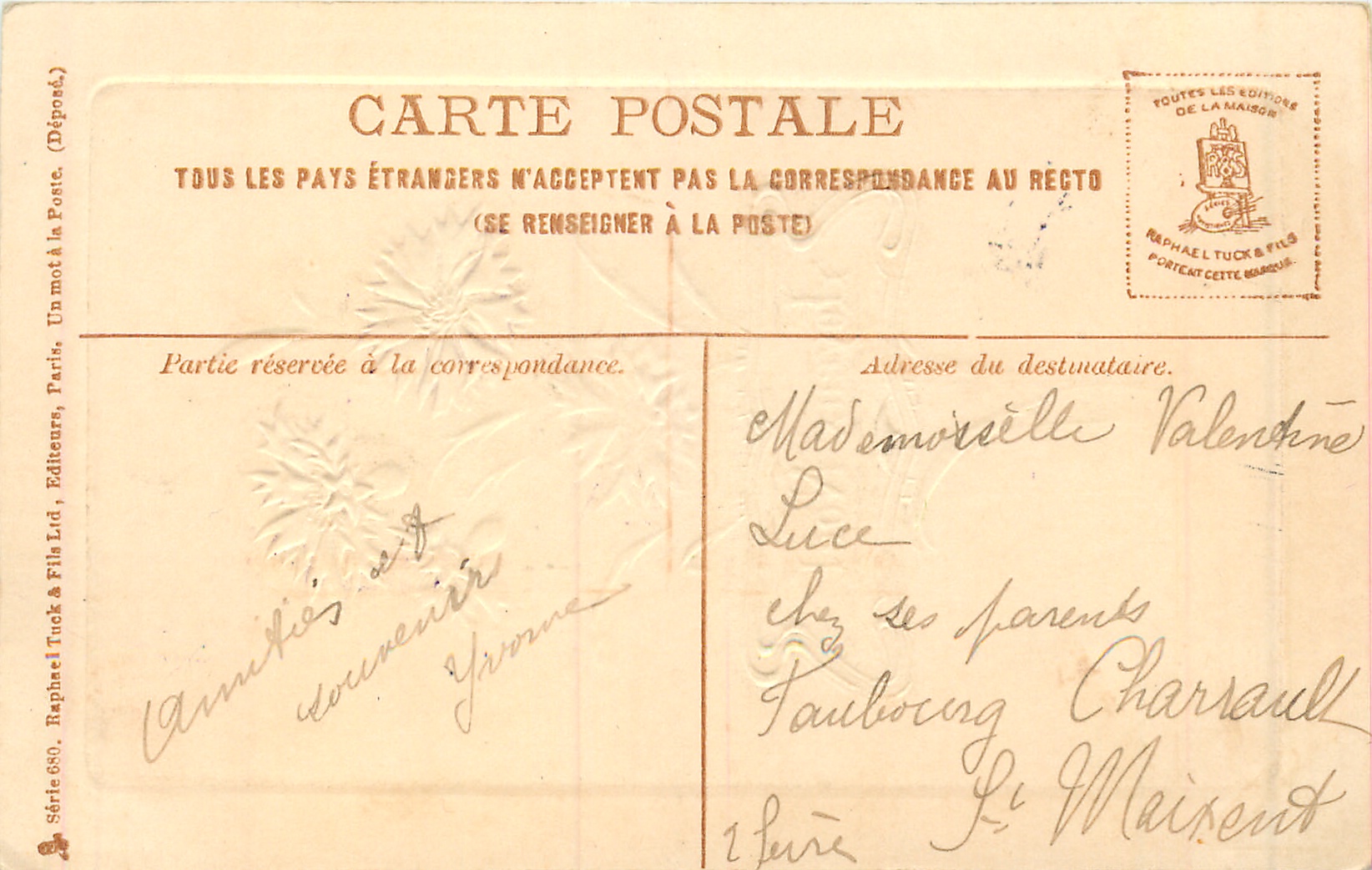 embossed, & gilt inscription, UN MOT A LA POSTE, (DEPOSE)