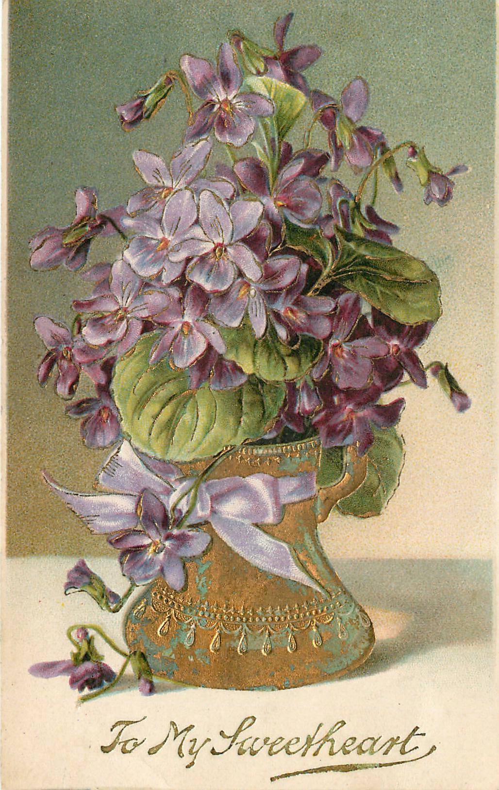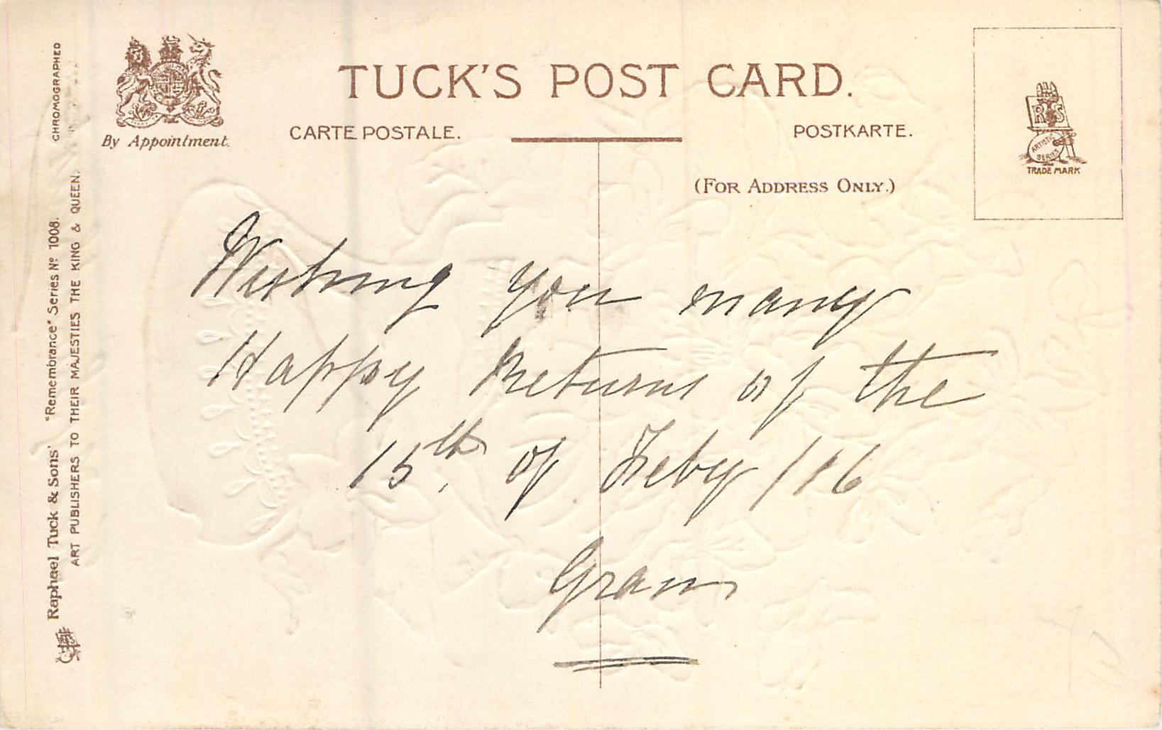 CHROMOGRAPHED IN PRUSSIA, embossed gilt pots & gilt greetings, same images in BIRTHDAY 1003 & CHRISTMAS SERIES 1007