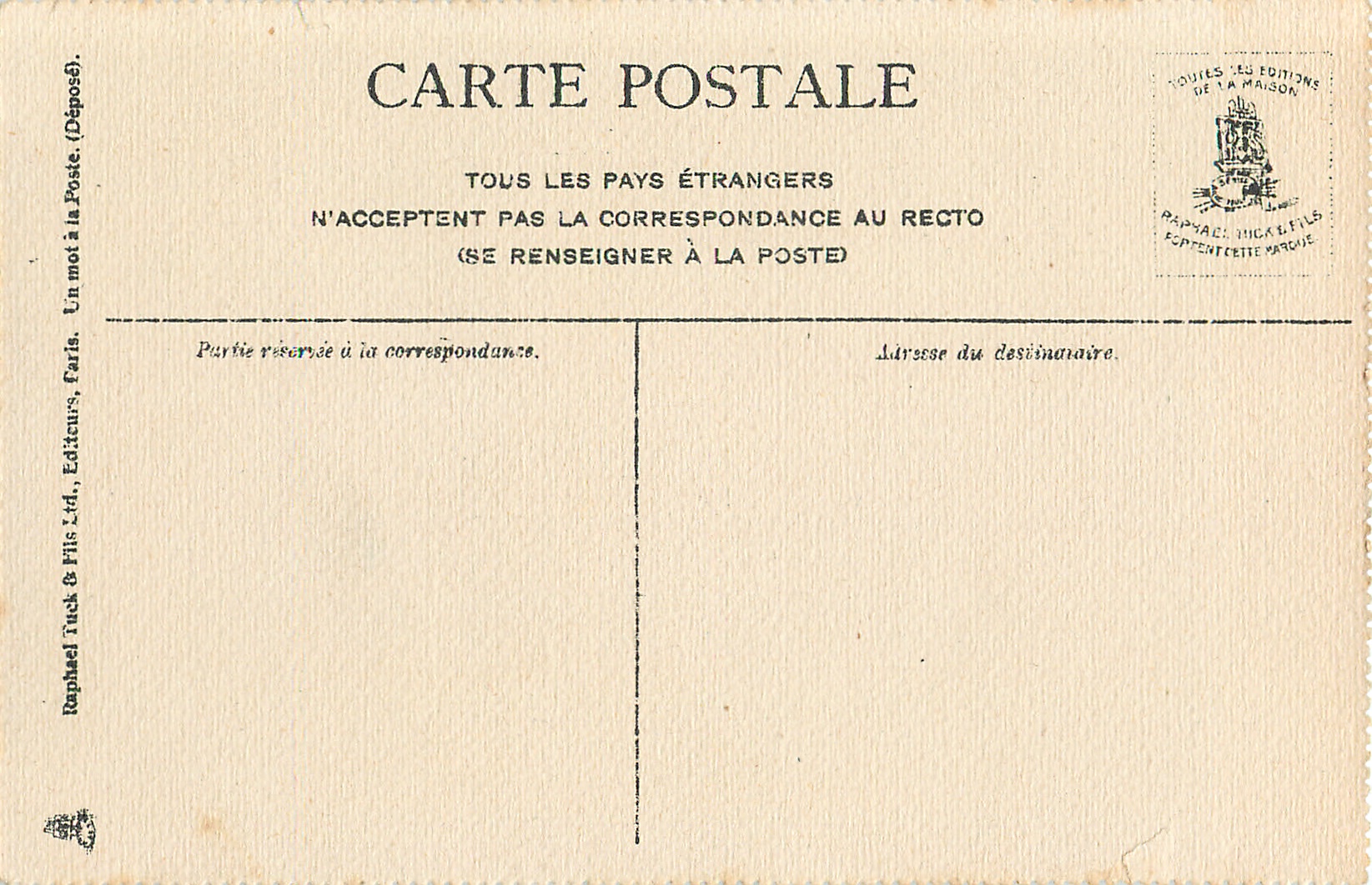 back top CARTE POSTALE, TOUS LES PAYS ETRANGERS N'ACCEPTENT PAE LA CORRESONDENCE AU RECTO (SE RENSEIGNER A LA POSTE, UN MOT A LA POSTE (DEPOSE), in painting books, intended to be to be coloured, perforated-often trimmed