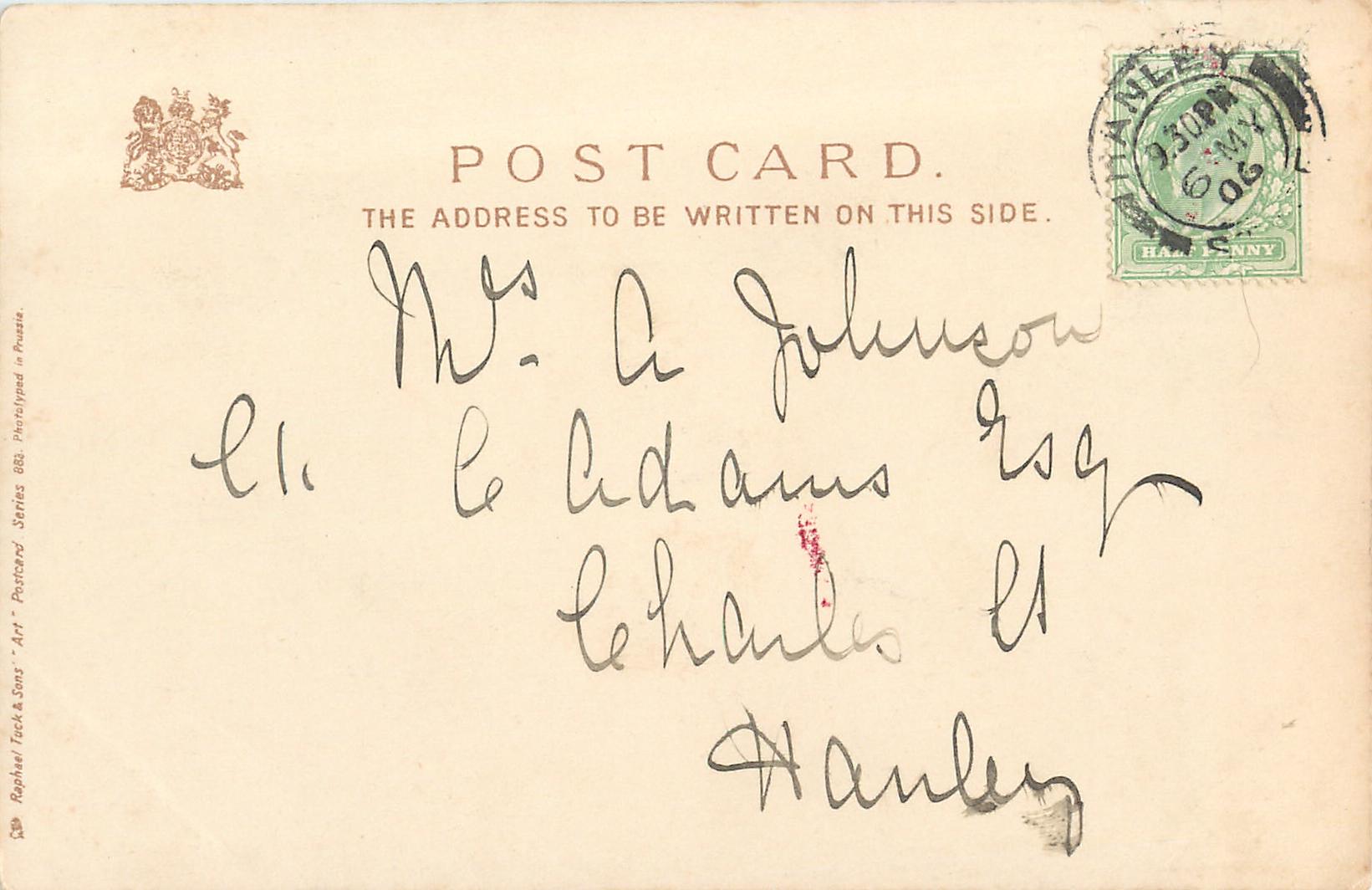 ART, u/b, PHOTOTYPED IN PRUSSIA, listed in 1904 POSTCARD Catalogue