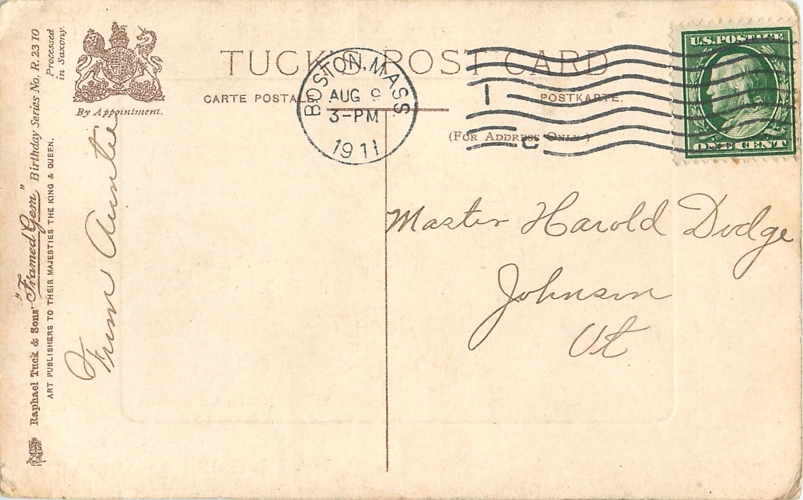 gilt, FRAMED GEM, PROCESSED IN SAXONY, glossy, listed in1911/1912 Postcard Catalogue