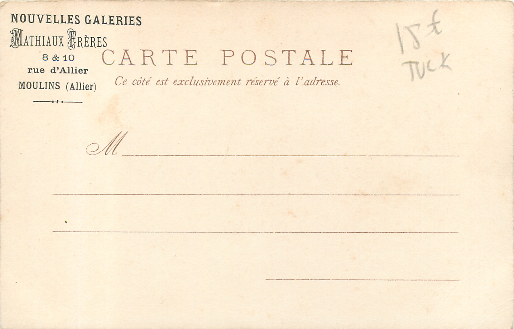 u/b, UN MOT A LA POSTE, (DEPOSE), come with advert NOUVELLES GALERIES MATHIAUX FRERES 8 & 10 RUE D'ALLIER MOULINS (ALLIER)