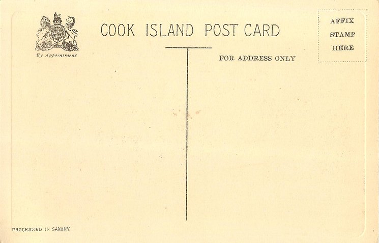 COOK ISLAND POSTCARD, PROCESSED IN SAXONY, embossed margins
