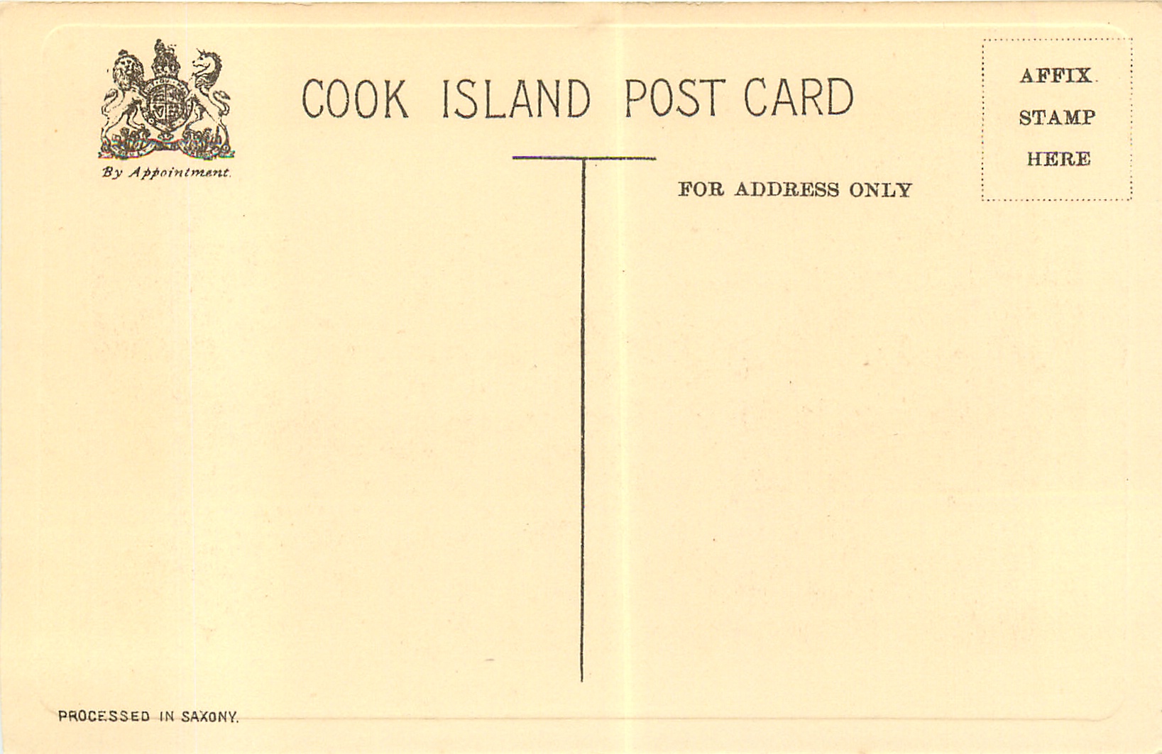 COOK ISLAND POSTCARD, PROCESSED IN SAXONY, embossed margins