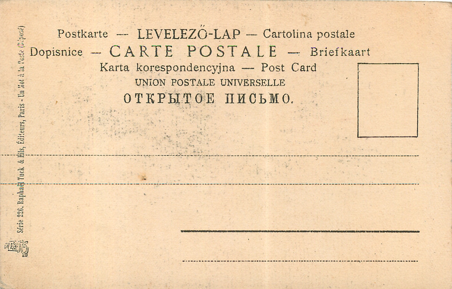 u/b, International backs, sepia, UN MOT A LA POSTE, (DEPOSE), S.B. VIENNA on back, NO 526 & clover leaf on front in margin