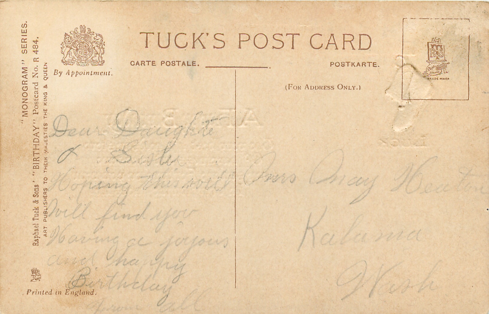 MONOGRAM, gilt embossed, PRINTED IN ENGLAND
