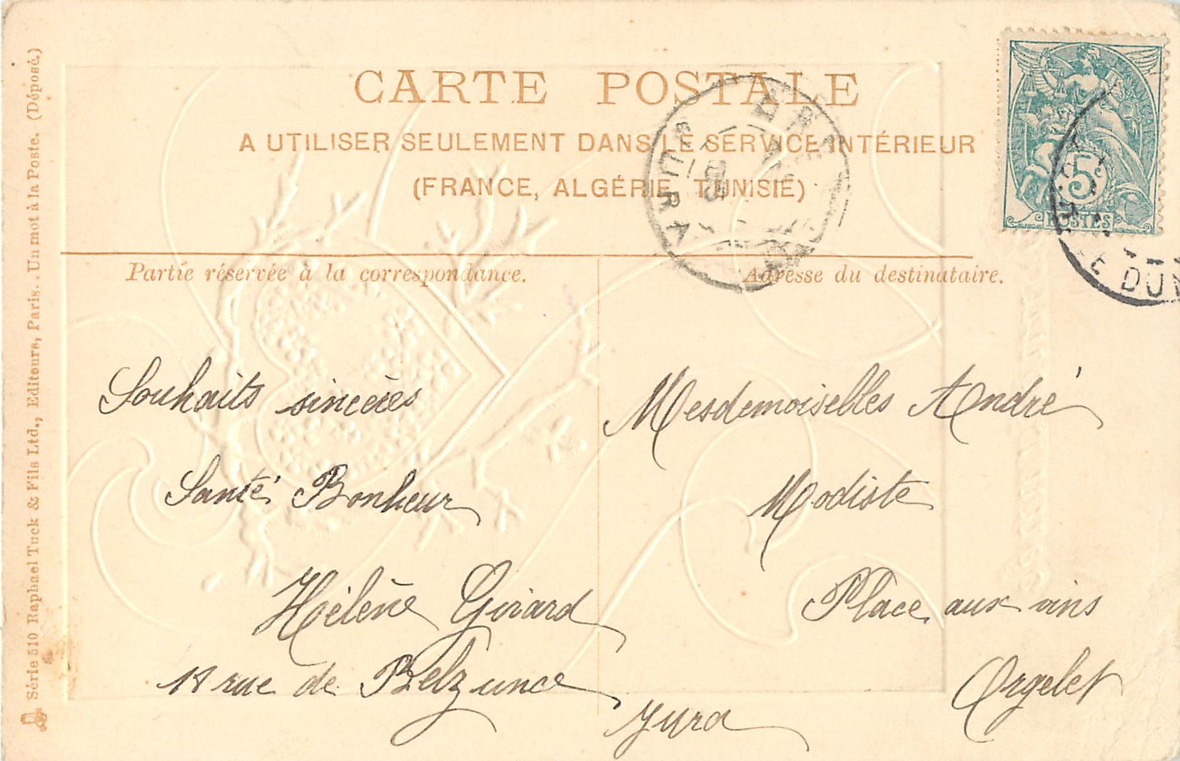 gilt embossed, UN MOT A LA POSTE, (DEPOSE)