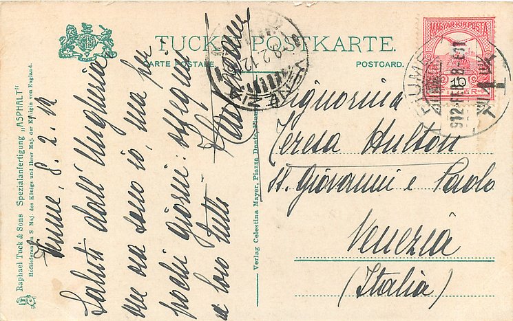 "ASPHALT", VERLAG CELESTINA MAYER, PIAZZA DANTE, FIUME (vert. mid-card), back partly in German