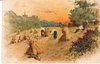 harvest scene with workers stooking wheat in fields, rural surrounds