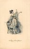 A HAPPY NEW YEAR, black & white study of girl with one knee on chair, arms raised red ear piece