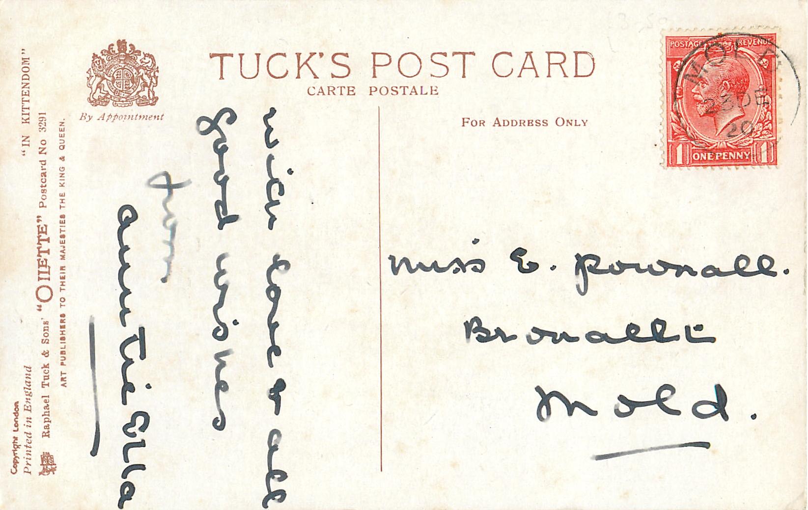 OILETTE, PRINTED IN ENGLAND, COPYRIGHT LONDON, 2 backs, come with & w/o various greetings & verses