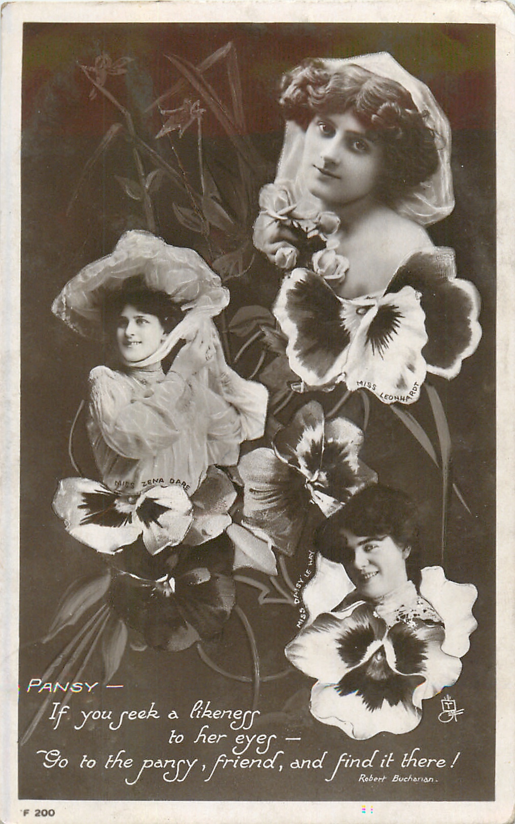 PANSY, 3 insets of actresses, IF YOU SEEK A LIKENESS TO HER EYES-GO TO THE PANSY, FRIEND, FIND IT THERE!