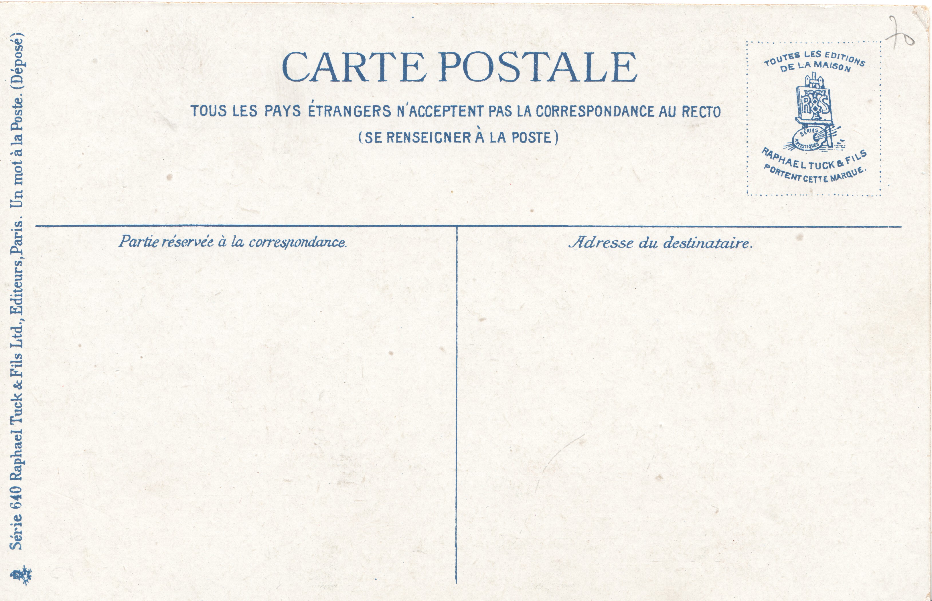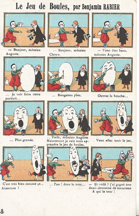 blue backs UN MOT A LA POSTE, (DEPOSE) 12 insets with story written sequentially under each picture , come with advert CHICOREE ARLATTE in black on back