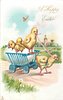 A HAPPY EASTER 3 chicks in eggshell cart driven by another chick