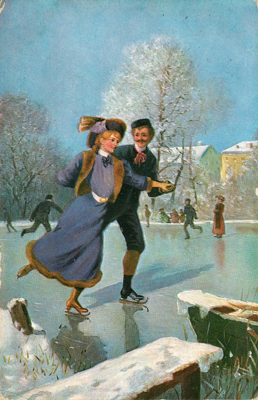 couple striding forward skating
