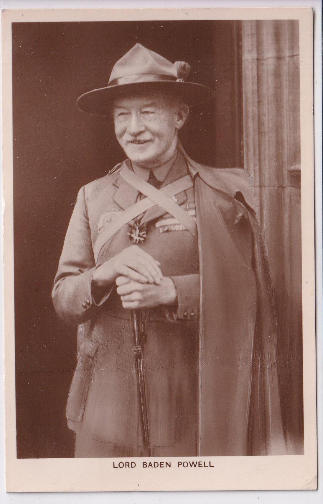 SIR ROBERT BADEN POWELL, 3/4 length study, hands on walking stick