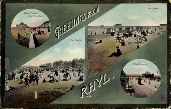 GREETINGS FROM RHYL, 4 insets WEST PARADE AND PAVILION and THE SANDS and THE SANDS and WEST PARADE