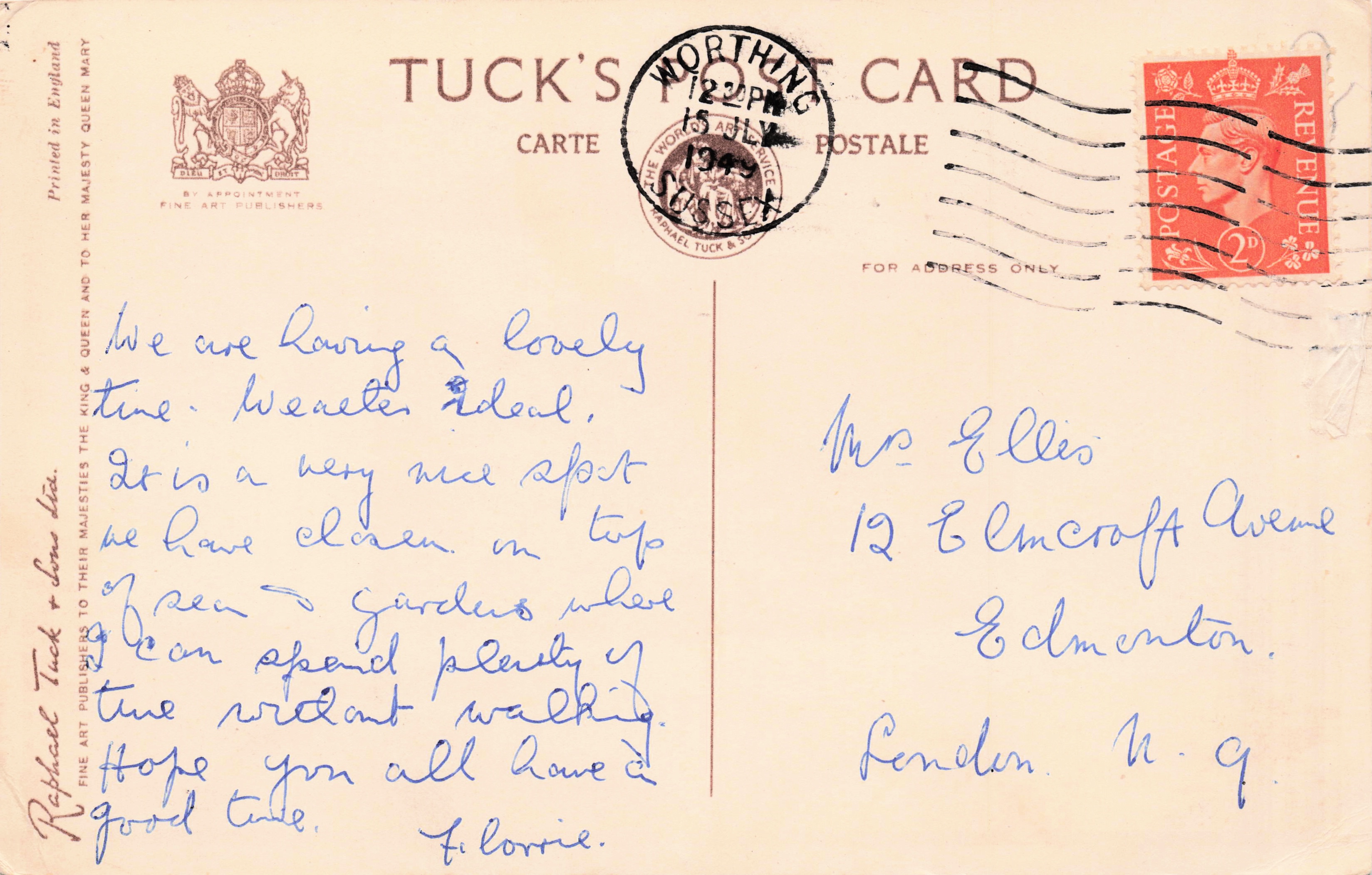 sepia, PRINTED IN ENGLAND, come hand-coloured, several styles & many printings of some images including chromes & Real Photographs which are listed separately, some come with GREETINGS TO YOU, TO BRING YOU GREETINGS or GREETINGS FROM WORTHING on back